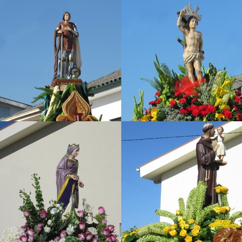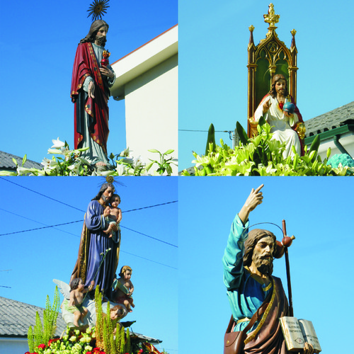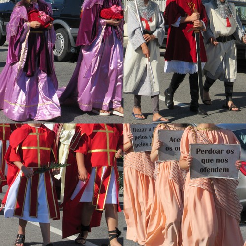 Três cavaleiras abrem o cortejo religioso. Segue a fanfarra dos escuteiros e irmandades locais. Diversos andores e figurados, que representam cenas e figuras religiosas, prosseguem atrás. Incorporam-se ainda o rancho da terra bem como as autoridades oficiais. Como é hábito a Banda de Música encerra o cortejo.