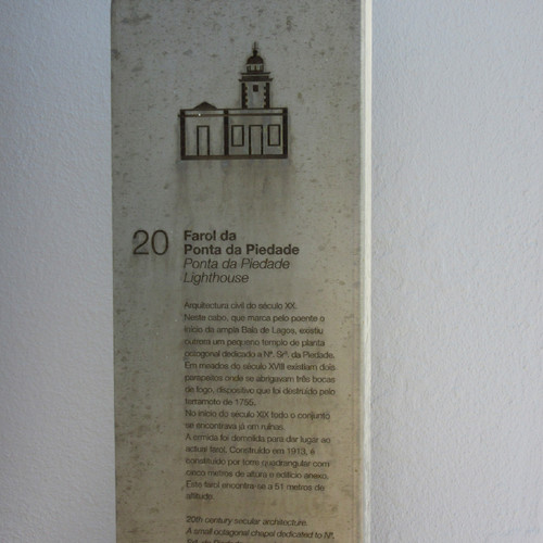 Arquitectura civil do século XX. Neste cabo, que marca pelo poente o início da ampla Baía de Lagos, existiu outrora um pequeno templo de planta octogonal dedicado a N.ª Srª da Piedade.